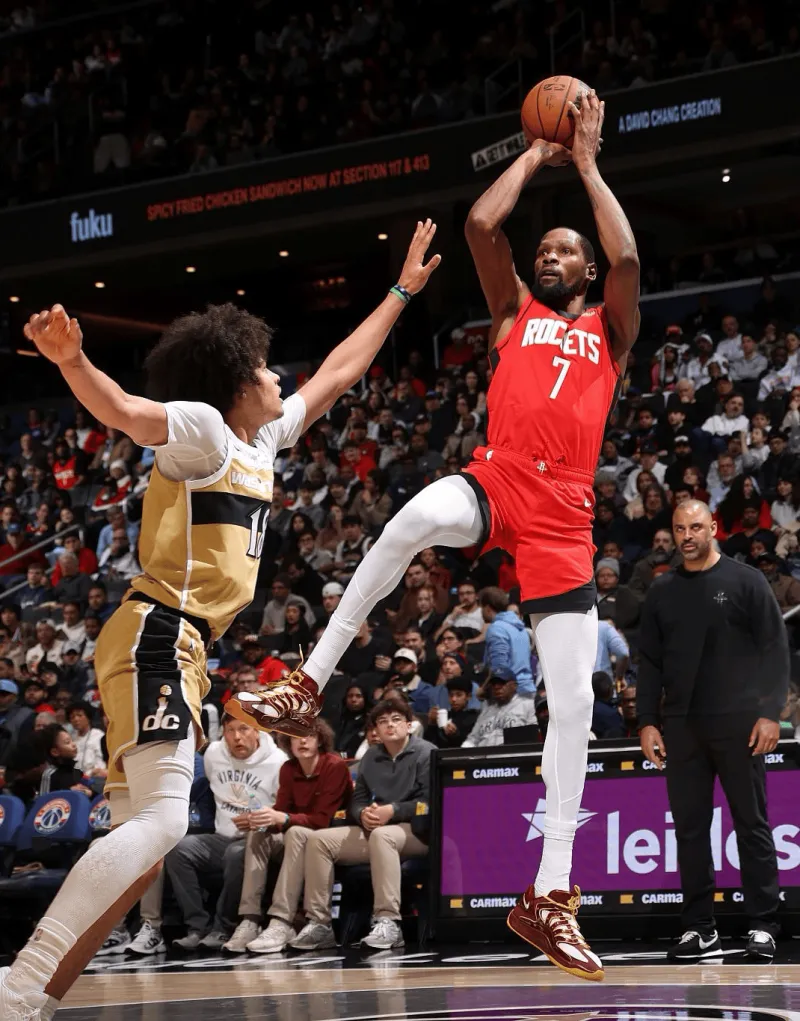 旺财28-杜兰特穿着华盛顿指挥官配色KD18,得到30分7篮板1盖帽